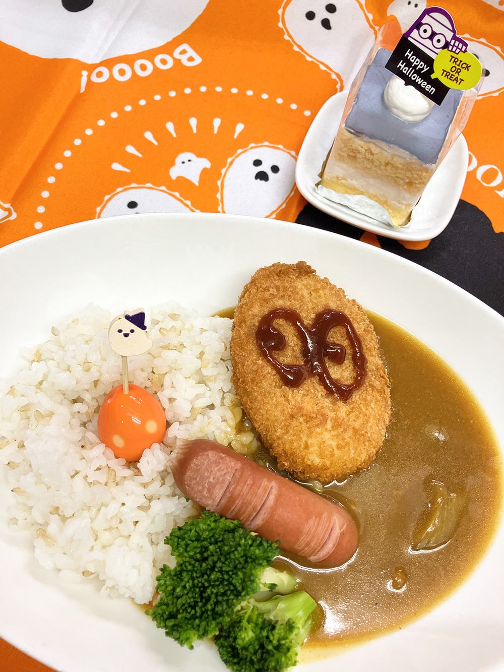 メニューは、恒例となっているシェフなおちゃんの指ンナーの入りスペシャルカレーにハロウィンケーキ♪