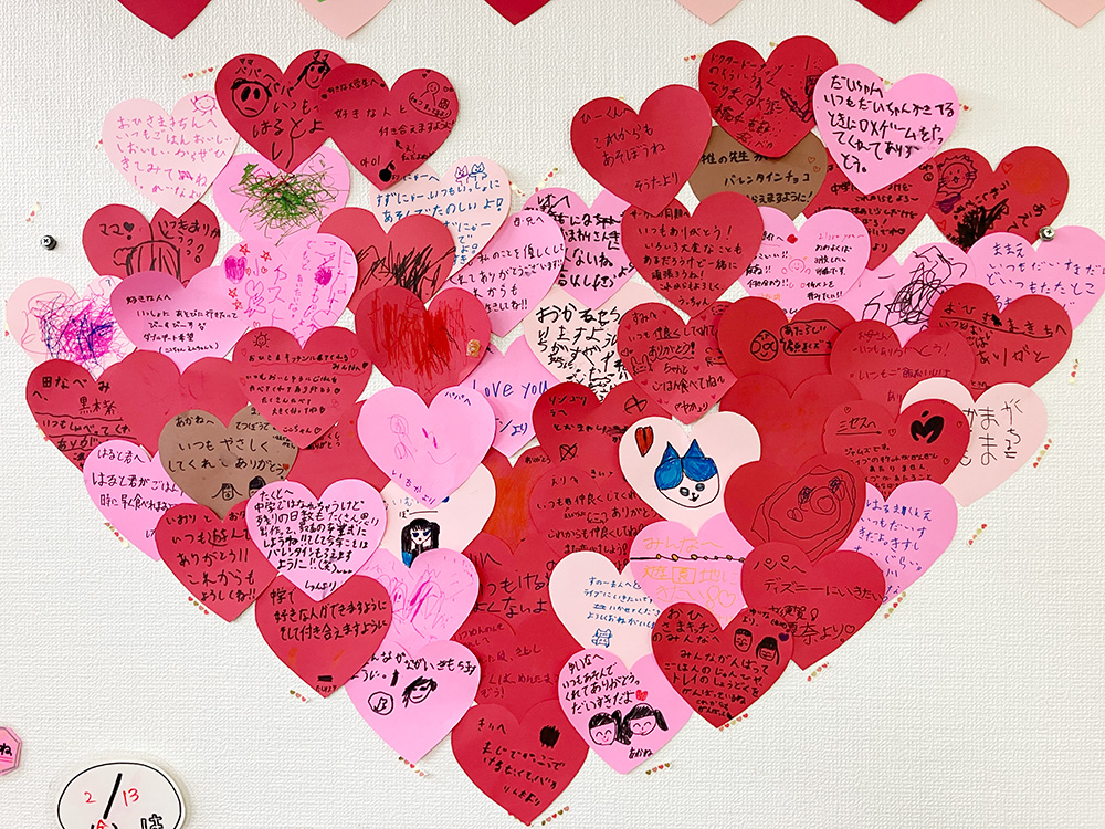 この日のためにハートのカードを用意して、お友だちにメッセージを書いてもらっていました。